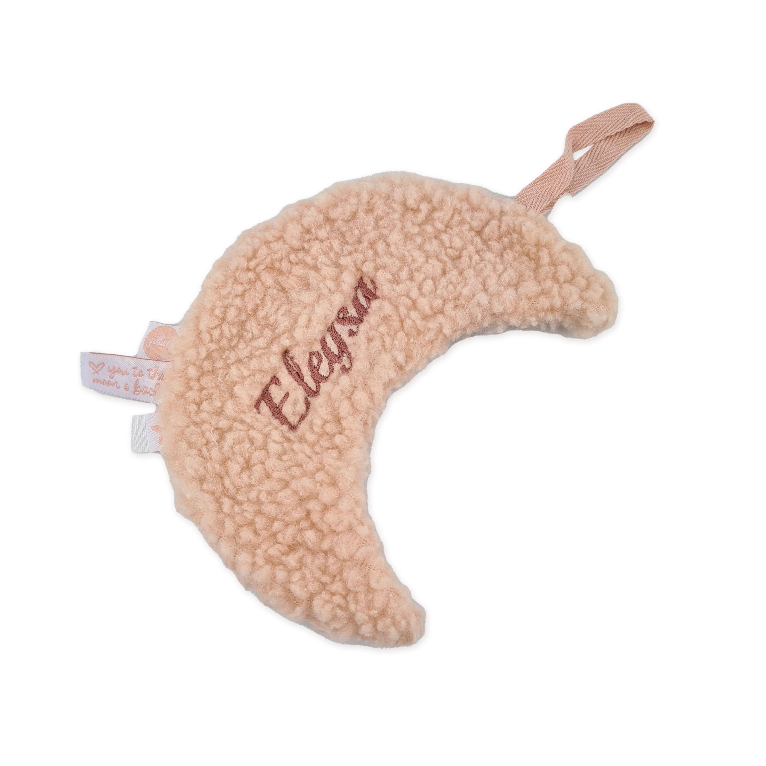 Knuffeldoekje maan – Pale Pink roze – gepersonaliseerde speenknuffel