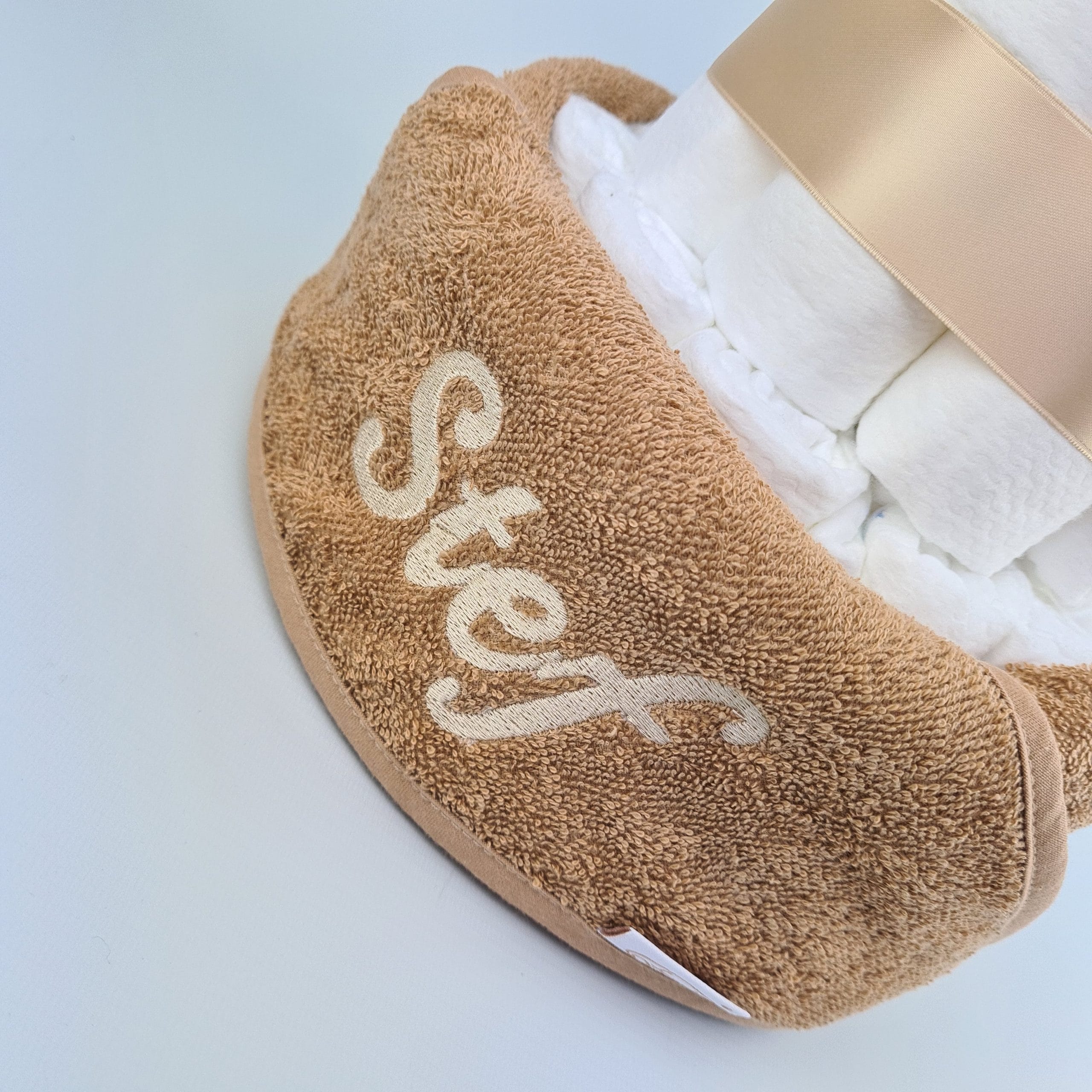 In het atelier van het Cadeau Monster worden alleen producten verwerkt van hoogwaardige kwaliteit. Standaard zijn de luiertaarten daarom opgebouwd uit Pampers Premium Protect (maat 2). Op aanvraag zijn er ook andere mogelijkheden, neem hiervoor even contact op met de klantenservice. Merken als Jollein, Meyco, Beebs ’n Beads, Funnies, Happy Horse en Little Dutch stylen de luiertaarten perfect af. Wist je dat we de voor de finishing touch speciaal luxe dubbelzijdig satijnlint importeren uit Zwitserland? Nergens anders zie je deze kwaliteit en dat is af te zien aan onze producten. Een lust voor het oog en daarnaast heel praktisch, gevuld met onmisbare producten voor die heerlijke babytijd.