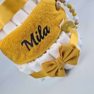 Merken als Jollein, Meyco, Beebs ’n Beads, Funnies, Happy Horse en Little Dutch stylen de luiertaarten perfect af. Wist je dat we de voor de finishing touch speciaal luxe dubbelzijdig satijnlint importeren uit Zwitserland? Nergens anders zie je deze kwaliteit en dat is af te zien aan onze producten. Een lust voor het oog en daarnaast heel praktisch, gevuld met onmisbare producten voor die heerlijke babytijd.